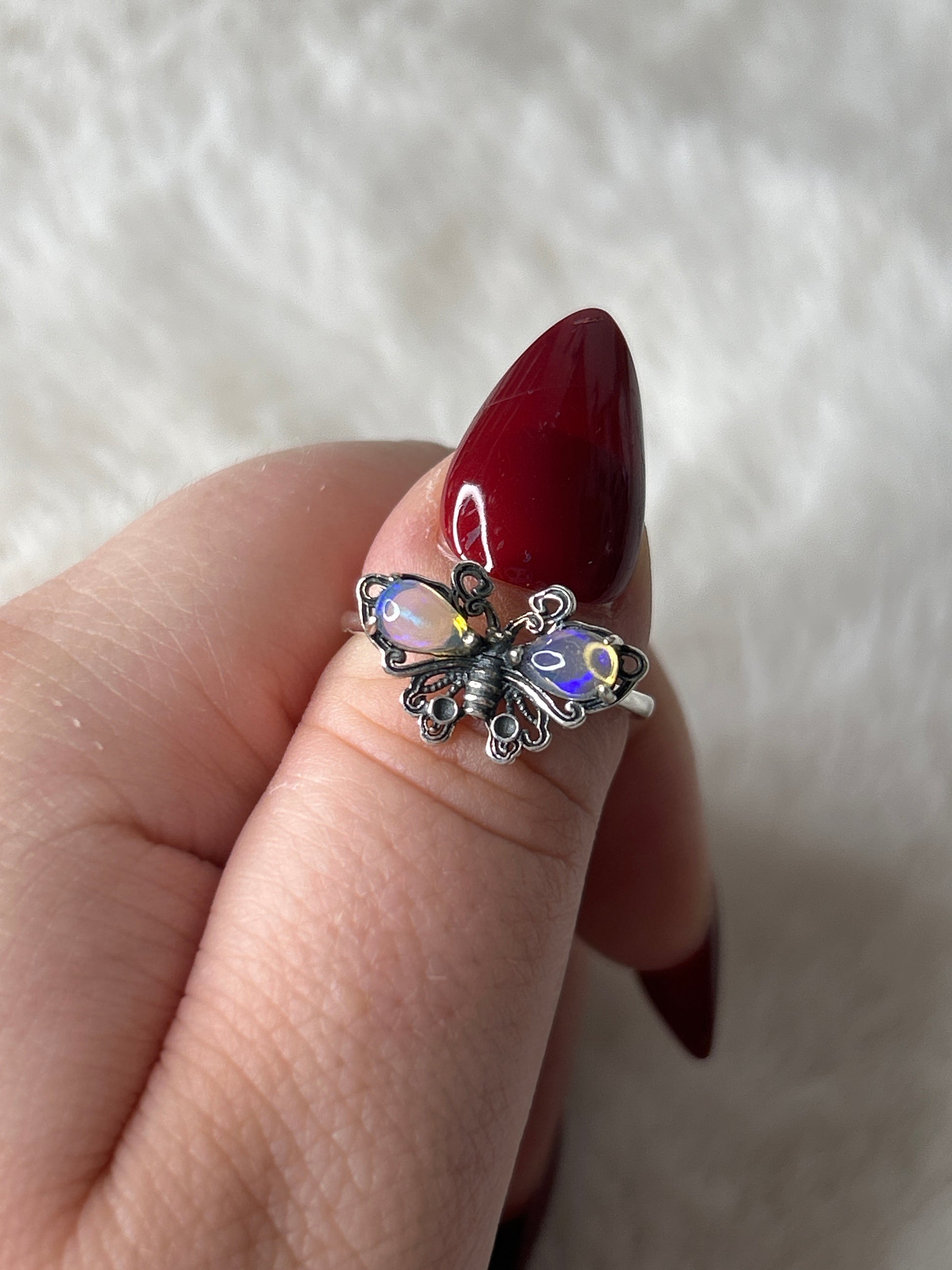 925 Sterling Silver Opal Butterfly Ring